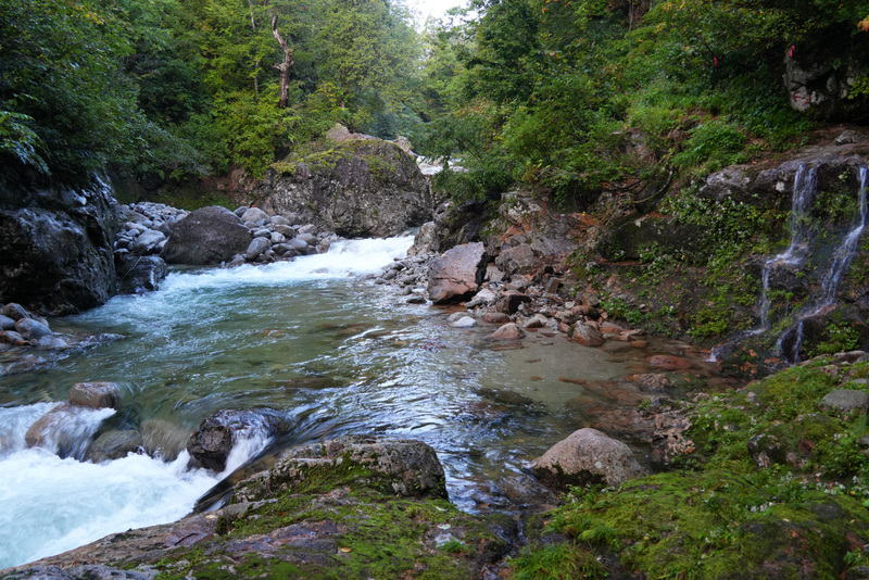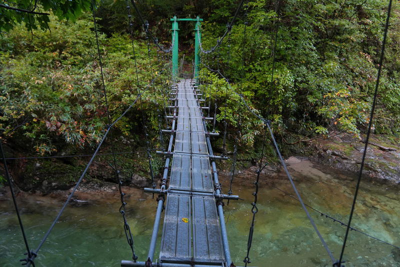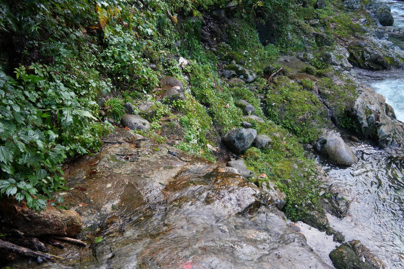沢にロープで下る箇所は危険だとは感じなかったが、雨で増水した川や濡れた岩は緊張感があった。