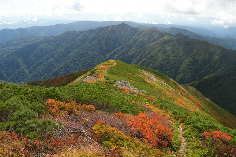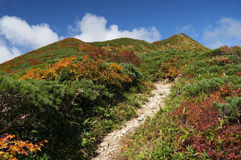 ひたすら続く登りはかなりきついが、紅葉が美しく気分よく登ることができた。