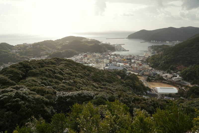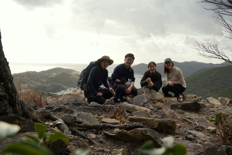 1月15日清水山 駅伝部など四人で清水山、有明山を目指した。 対馬博物館から道標を頼りに登っていくと登山口がある。 清水山には秀吉が築いた清水山城の石垣が残っていて眺めがいい。 対馬特有の常緑樹の森を有明山を目指して登っていたが、雷の音がして雨雲レーダーで確認すると雨雲が近づいている。 残念だが途中で引き返すことにした。 遊歩道まで降りてきたところで降り出したが、傘をさしても問題ないところで助かった。 15時30分集合で空港に移動し、福岡へ。 今日は福岡に宿泊。